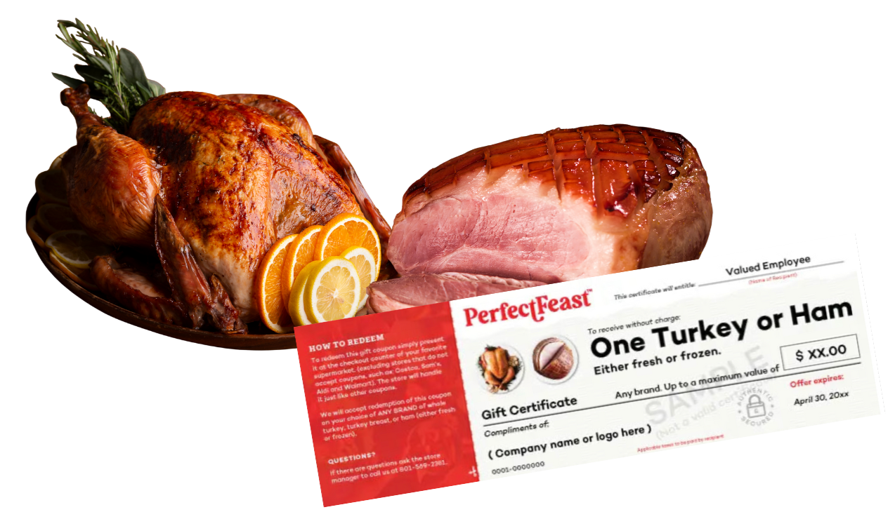 Perfect Feast Turkey or Ham Vouchers are a tax-free (de minimis) gift, a smart choice for employers and employees. Avoid administrative, tax, and employee support issues while they enjoy a practical and personal gift.